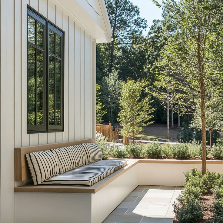 You can also use outdoor cushions and pillows and put them up against the walls to make this seating even more comfortable. If benches are long enough, people can even lay down on them while reading books.