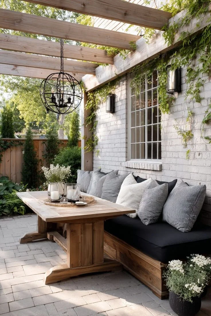 If you have the option, you could also look into adding built-in wooden benches or seating to your patio area. Again, this makes it feel more natural and organic. Integrating wooden benches into the perimeter gives you more space to entertain guests. It creates a seamless look that avoids the piecemeal effect that some wooden table and chair sets can bring.